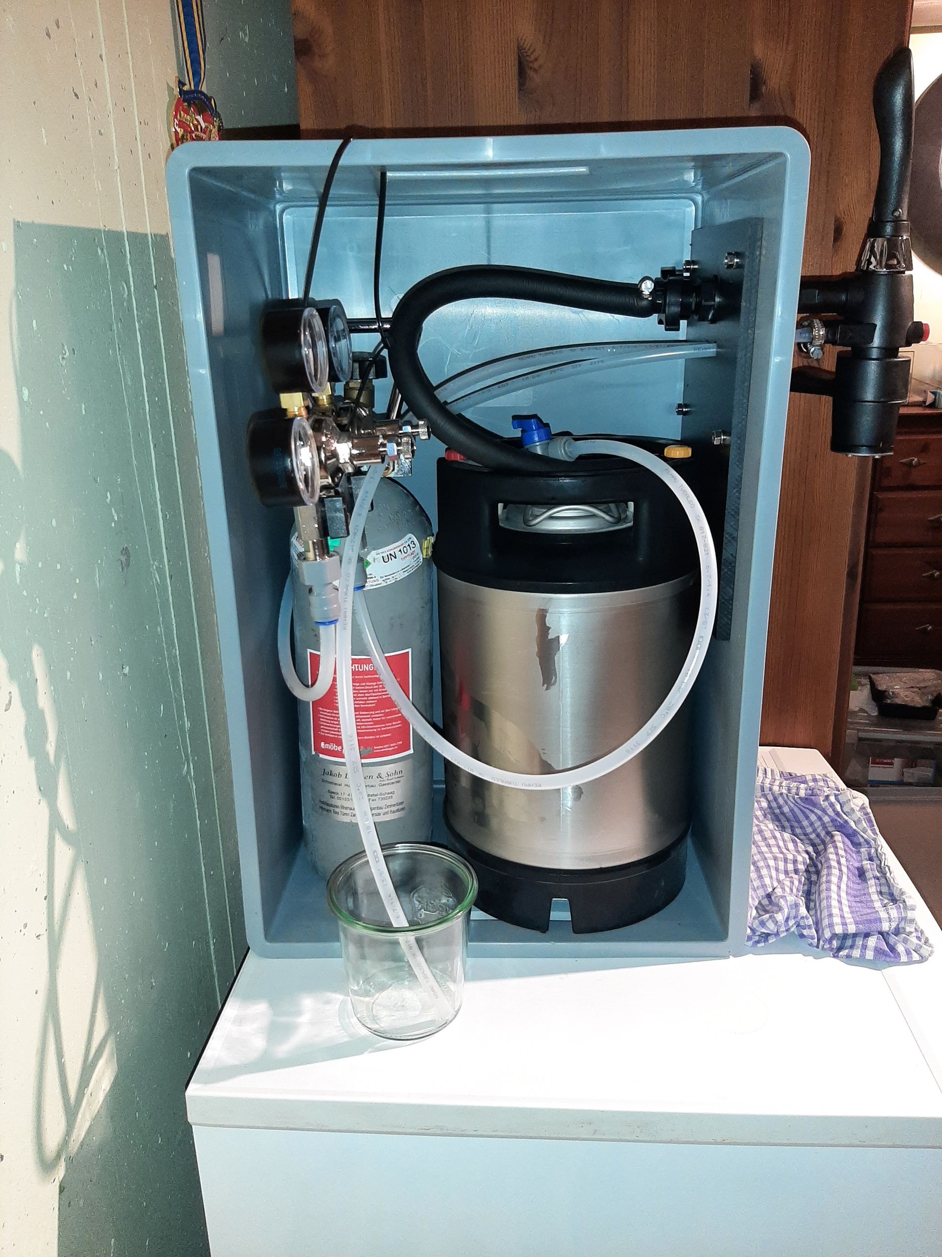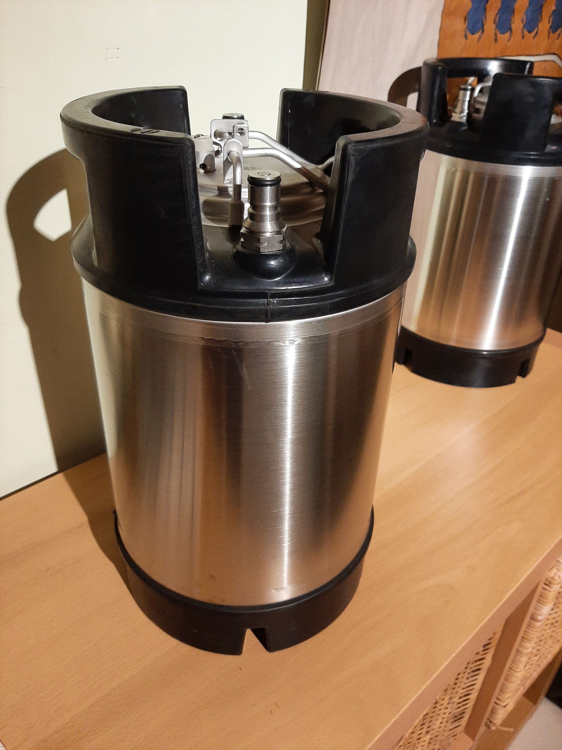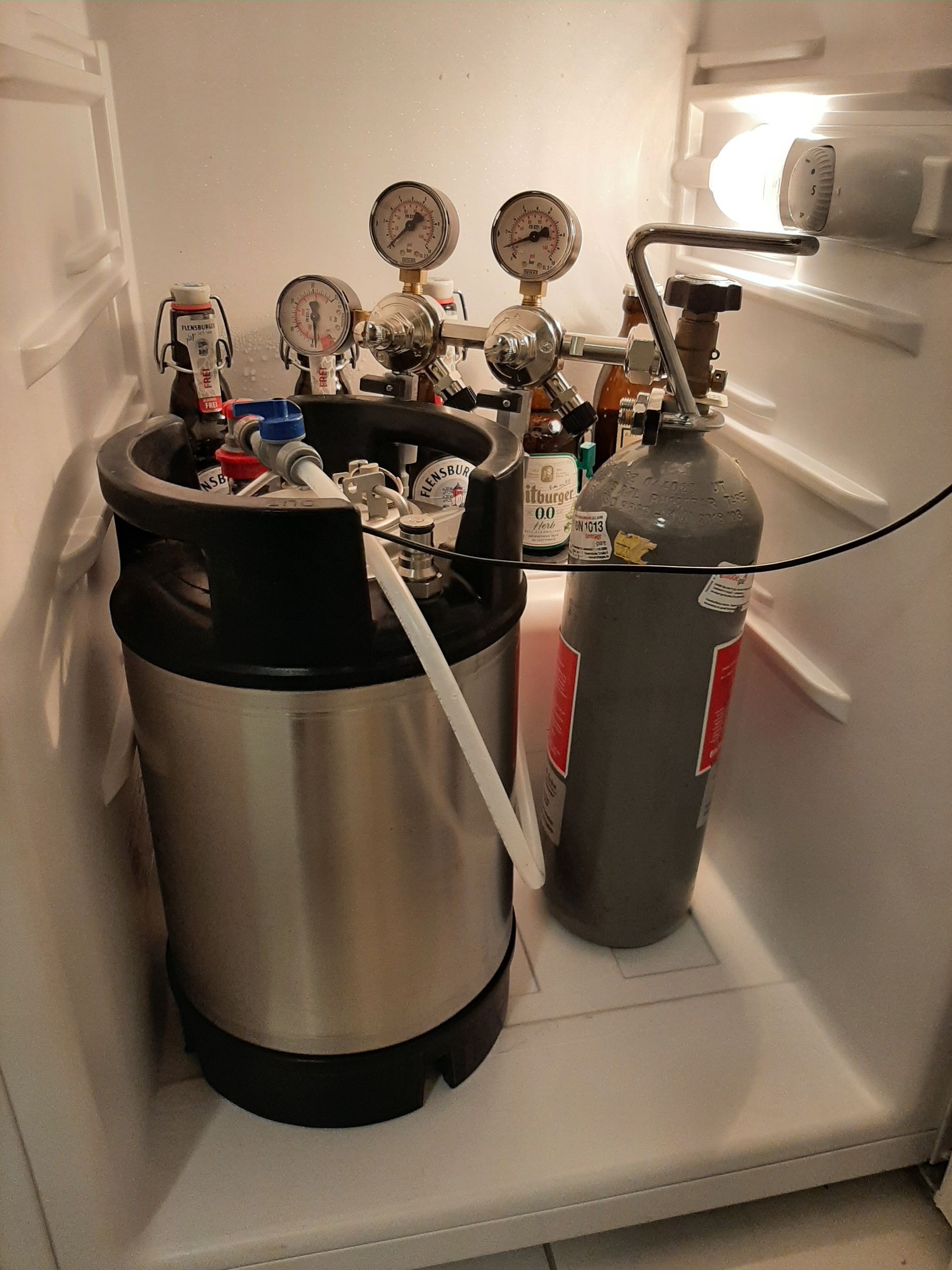 Die Flaschenkarbonisierung wurde mir zu blöde. Jetzt habe ich nochmal etwas investiert und mir Kegs angeschafft. 2x 9.5l Sodakegs. Die großen 19l passen nicht in meinen Kühlschrank