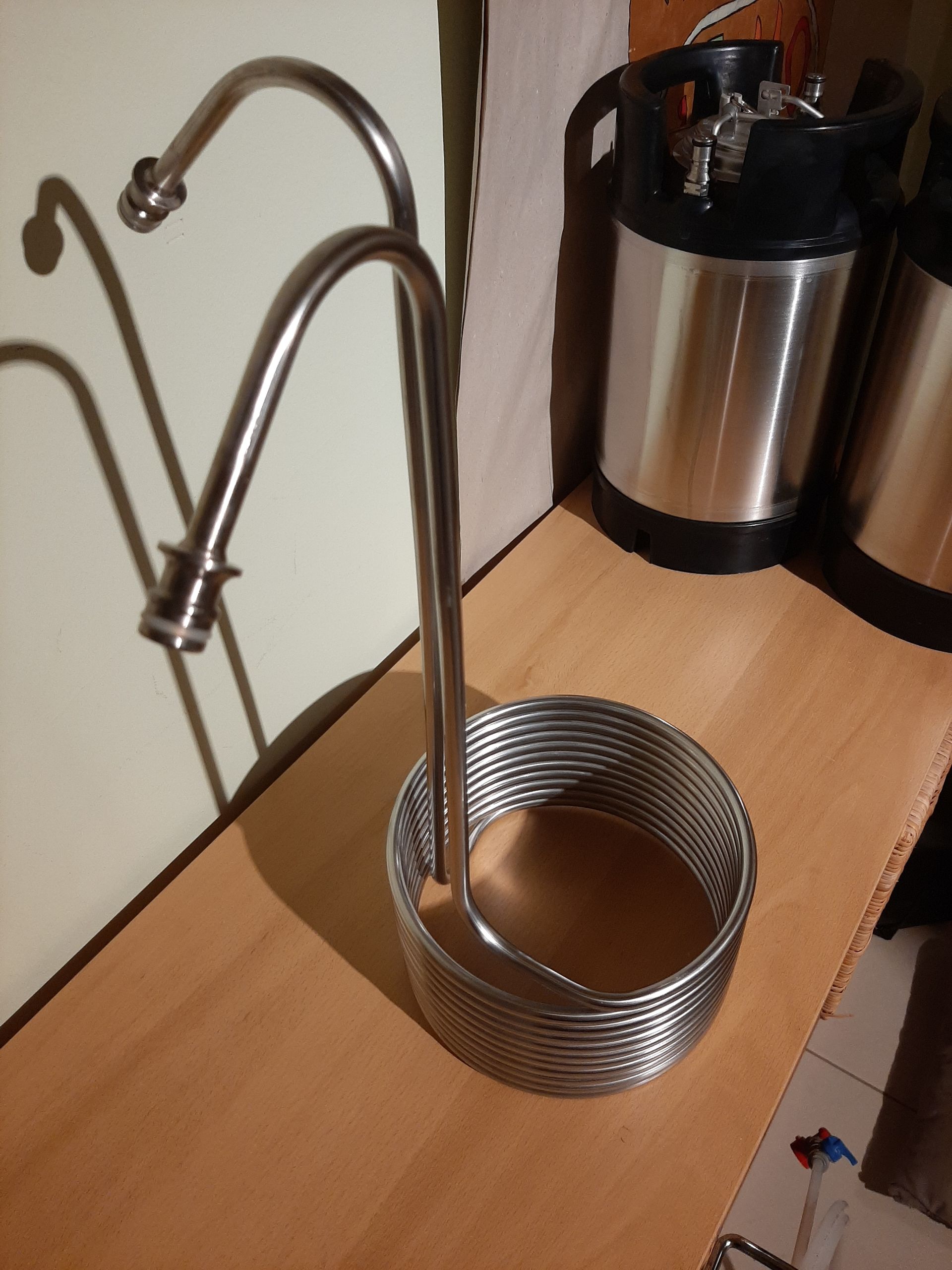 Nicht ganz billig, aber genial. Ein kompletter Sud (>20l) von 100°C runter auf 20°C in nur einer halben Stunde