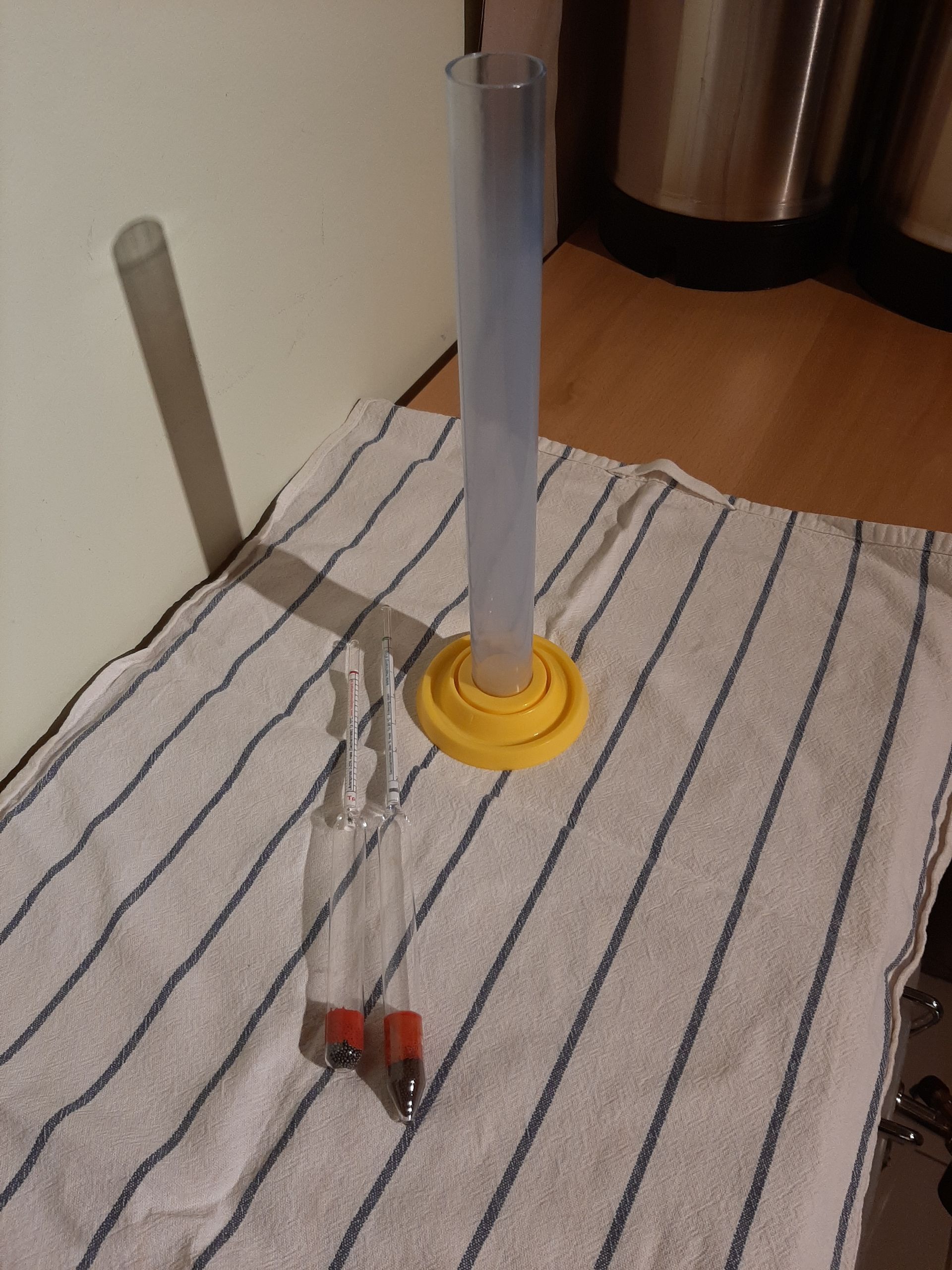 Das Läutersaccharimeter (geeicht auf 70°C im Gegensatz zum normalen bei 20°C) hat jetzt das Refraktometer bei mir komplett verdrängt. Letzteres war mir zu ungenau. Möglicherweise bin ich auch nur zu blöd es richtig zu benutzten. Aber Vergleichsmessungen haben schon krasse Unterschiede bis zu 2°P gezeigt